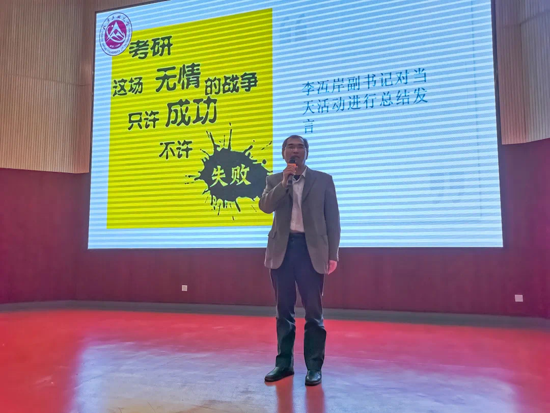 公司党委副书记李冱岸老师对本次活动进行了总结。他表示考研并不是一件轻松的事,同学们在面临抉择时要根据自身的实际情况多方考量,最终确定合适自己的考研方向并为之努力奋斗,就一定能取得满意的成果。
