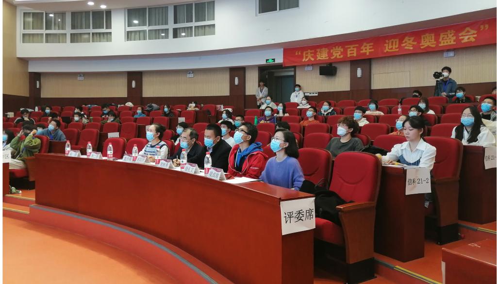 第二个环节是冬奥知识竞赛和主题宣讲。为让同学们更深入地了解冬奥会的相关知识,各班派代表队参加了冬奥知识竞赛和“心有灵犀猜冬奥”默契大考验活动。竞赛中,各班代表踊跃抢答,竞争激烈,在竞猜环节用肢体动作描述冬奥项目,很好地普及了冬奥知识。统19-2班齐添添同学从冬奥发展历程、中国健儿冬奥之路、中国申奥历程等方面进行了冬奥主题宣讲。