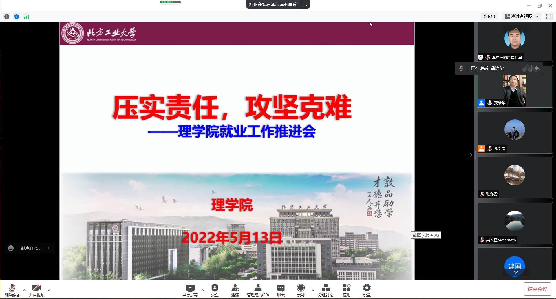 5月13日晚,伟德国际1946召开2022届毕业生就业工作线上推进会,公司班子成员、各系主任、责任教授、公司全体研究生导师、数学系和统计系全体教师、办公室全体成员参加会议。会议由党委副书记李冱岸主持。