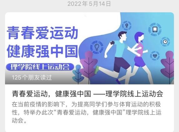 第一期比拼中理院学子共有8人获得核心力量达人称号,占全校获奖同学的三分之一,累计参与人次居全校第一,在此过程中,同学们积极关注、踊跃参与、认真准备,以持之以恒的锻炼保持健康体魄,以酣畅饱满的精神迎接美好未来。在打卡视频中,同学们都十分认真,动作非常标准,展现了理院学子积极参与体育运动“拼搏,进取,青春,活力”的精神风貌,很多同学都养成了坚持锻炼的好习惯。