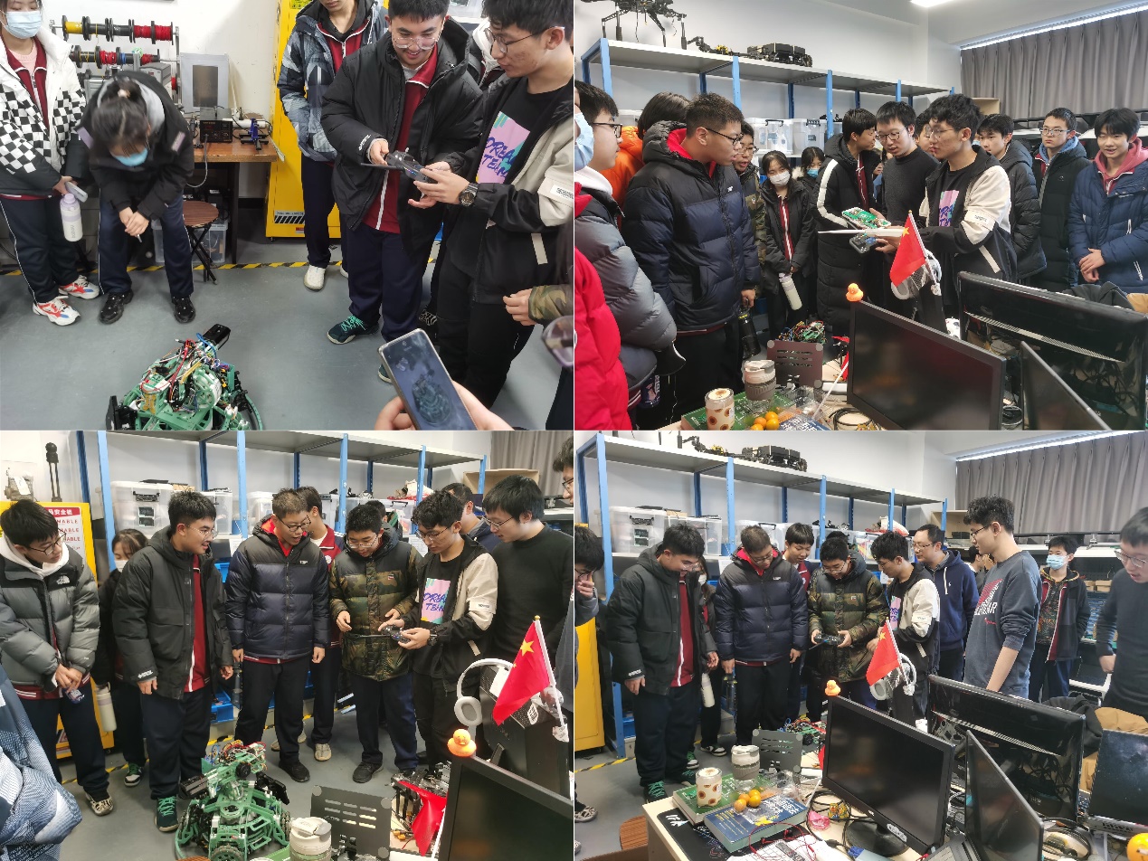 在电气与控制工程公司机器人实验室,毕松老师和他的员工为来访师生展示公司在机器人大赛中的获奖作品,同学们兴趣高涨,驻足围观,尝试动手实际操作,沉浸式体验了科技的魅力。