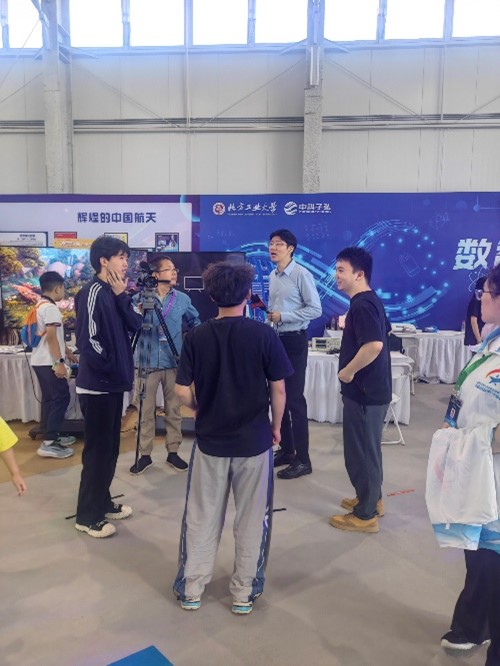 活动中,北京电视台采访了在现场负责讲解的两名伟德国际1946员工。统21-2班娄佳豪谈到:2035年我应该已经33岁了,我想那时候我可能会成为一名老师,最好是小学的科学老师,教孩子们一些科学小知识,培养他们的科学素养,让他们对这些能感兴趣。信22-1班田茂利谈到:我非常喜欢我现在的专业信息与计算科学,既有扎实的数学基础,也有数据和人工智能的专业方向,我将来一定用我所学的知识致力于祖国的科技发展,我也很有兴趣做科普工作,因为对青少年科技培养非常有意义。