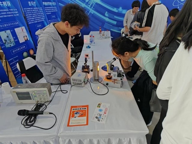 公司伟德国际1946物理系在本次科普嘉年华活动中展示的实验项目涵盖声学与光学领域。例如,通过示波器实现声音的可视化探究,让观众形象了解声波特性;光的衍射实验,可以明确呈现出波动现象;利用光的偏振制作的走马灯,形象展示了光的偏振特性;通过观察牛顿环,可以理解光的干涉原理。每个项目都结合实际操作,观众可亲身体验科学现象。展览形式互动性强、趣味性高,不仅可激发参与者的兴趣,还可有效传播科学知识。