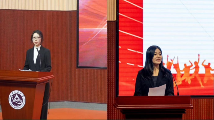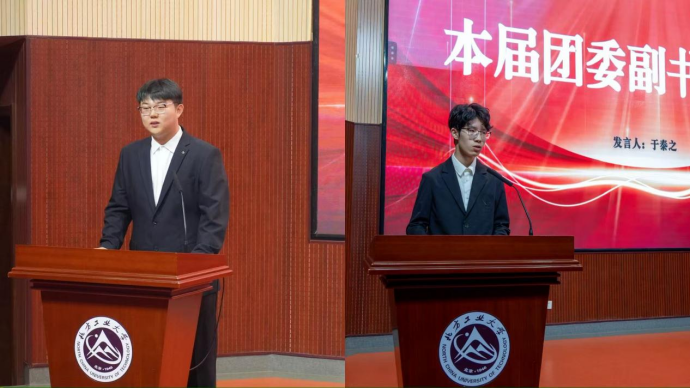 新一届员工会代表杜雨锡作表态发言。他表示,将带领新一届员工会成员传承上届优良作风,以“求真务实、开拓创新”的态度,聚焦同学们的需求,切实增强团学组织的凝聚力与影响力。新一届团委副书记于泰之同学发言,他承诺将以更高标准推进团务工作,加强团员思想教育,引导伟德国际1946青年学子在学术科研与社会实践中展现青春担当。