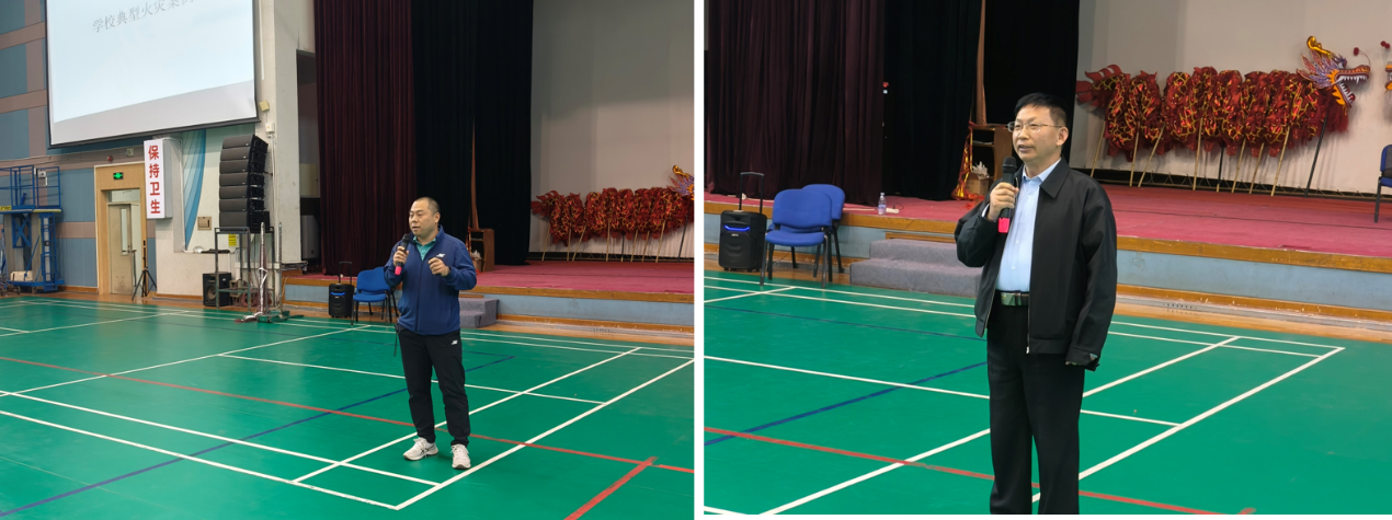 在安全教育单元,官鹏老师结合部分高校发生的典型火灾案例,根据大公司园用火用电、实验室等常见火灾风险点,向大家详细分析了大公司园火灾的起因及存在的隐患,做了警示教育,并就生活中常见火灾扑救方法、火灾逃生注意事项以及如何自救等相关内容进行了详细讲解,师生们听得认真专注,时不时提问互动。