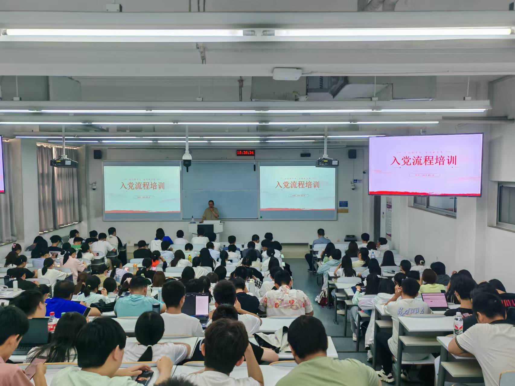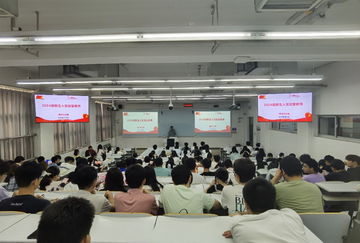 9月19日下午,伟德国际1946党委在瀚学楼0208开展2024级新生入党启蒙教育。党支部书记代表、新生辅导员、党务秘书和全体2024级新生参加了教育活动。