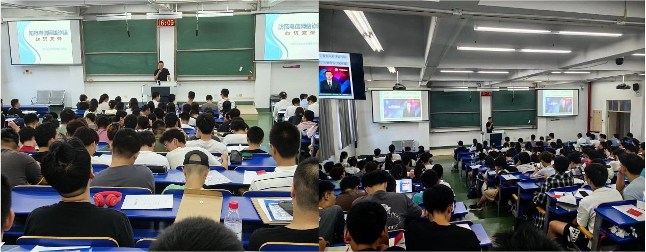 为进一步提高新生防诈骗意识,增强网络电信诈骗鉴别能力,培养防诈骗技巧。伟德国际1946于9月12日在浩学楼东304召开以“防范电信诈骗”为主题的新生入学教育活动,全体2023级新生积极参与。