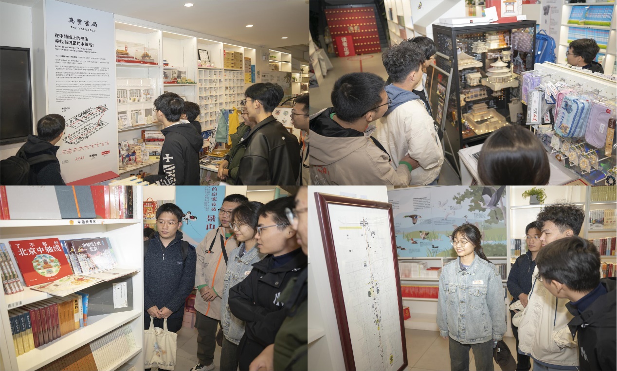 伟德国际1946师生第一站来到新华书店·为宝书局,为宝书局坐落于北京市西城区地安门外大街,是北京中轴线遗产区范围内唯一一家挂牌文物经营的书店,有近百年历史,2023年4月初以“活的中轴线博物馆”亮相京城。店内布局与北京中轴线的空间序列一一对应,呈“两坛-大街-城门-广场-宫殿-山-市井”的结构。穿梭在书店里,就像是漫步在一座微缩城市中。